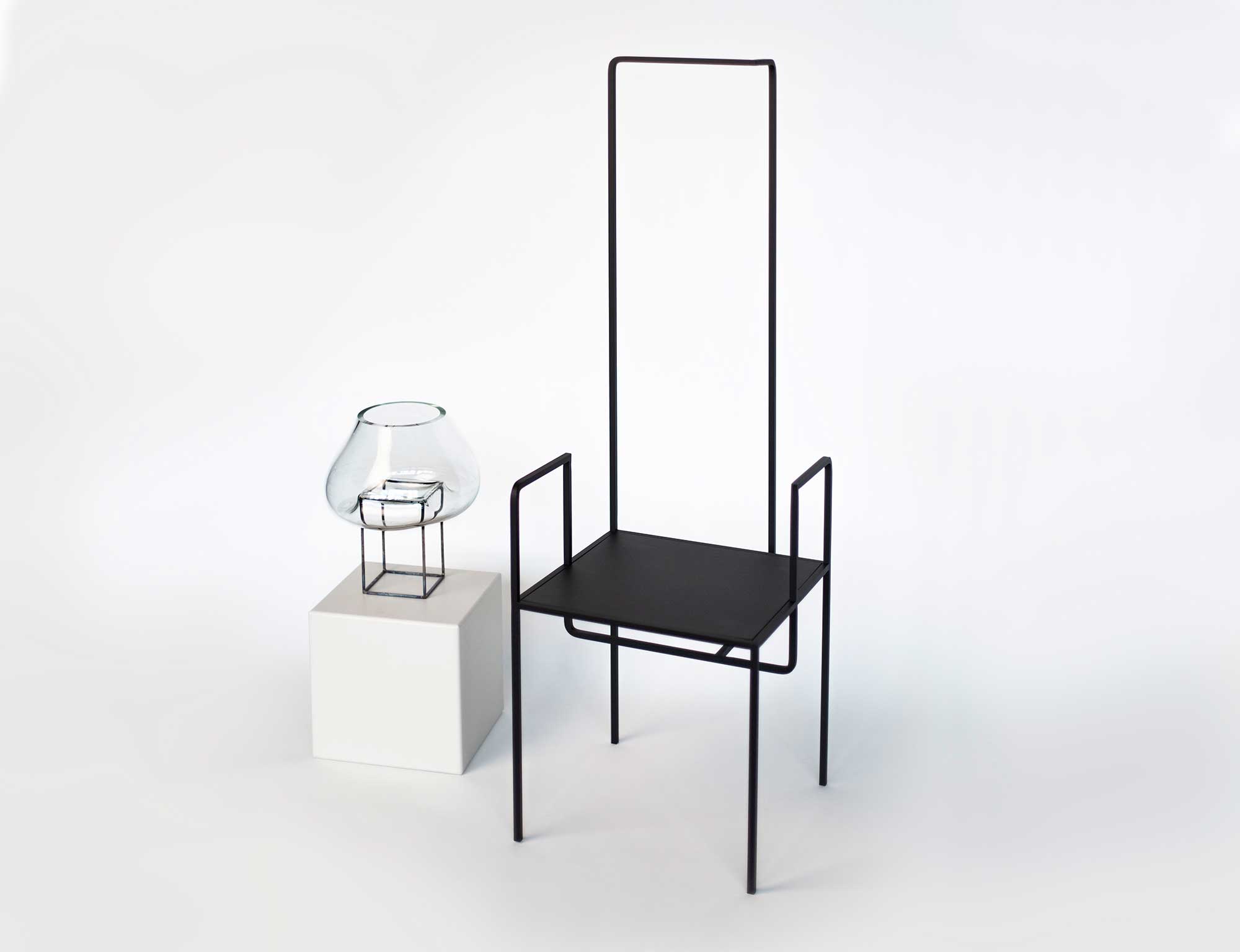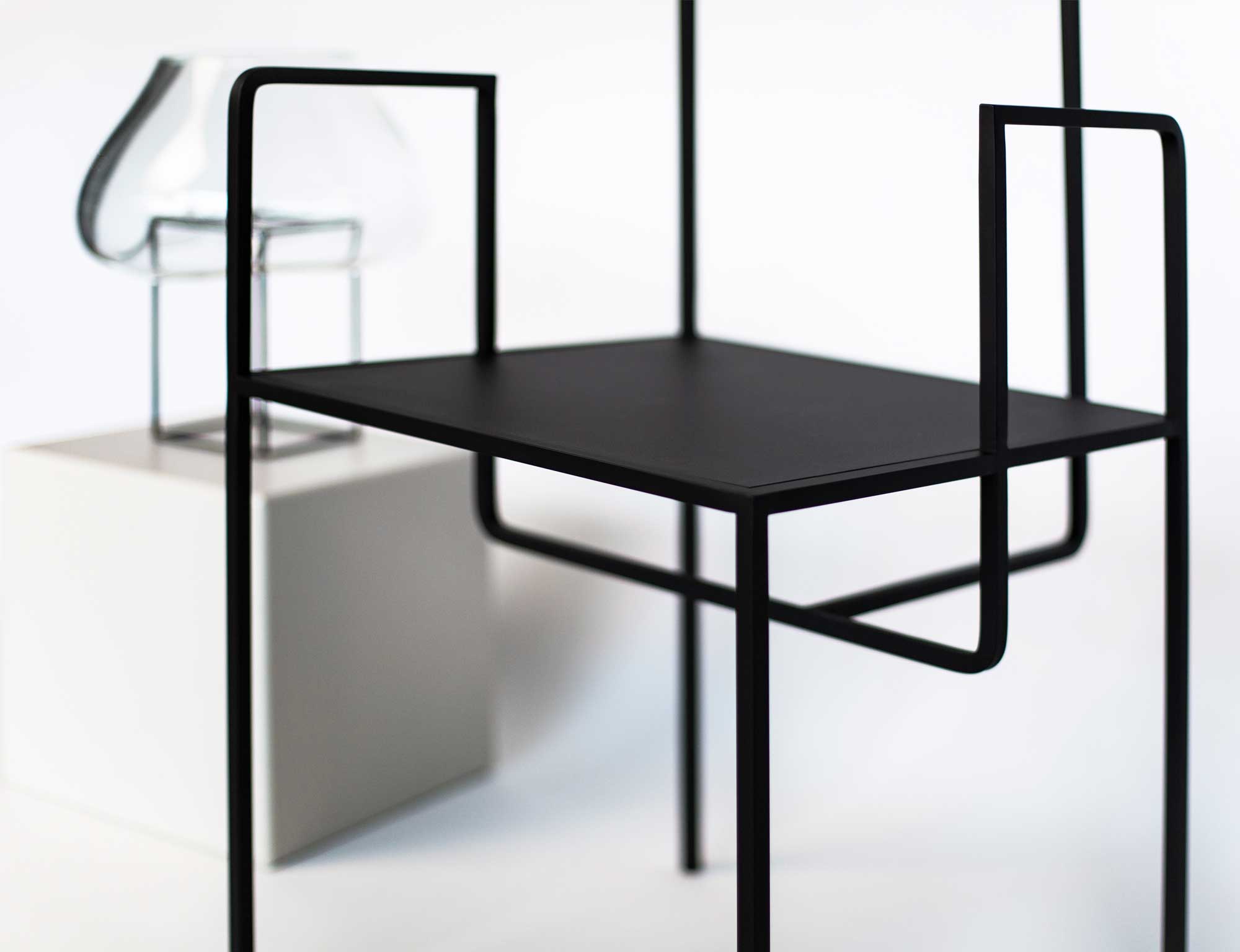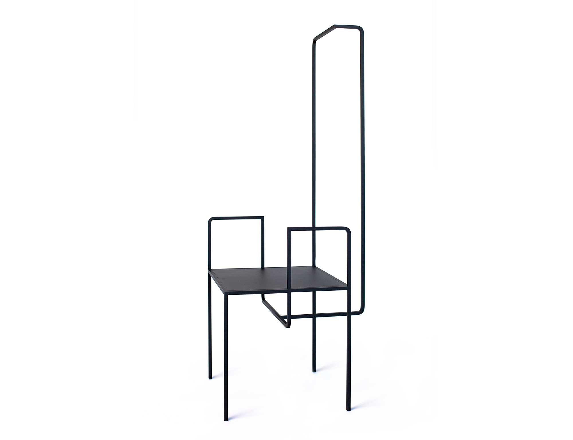 The object AI invites to explore the complexity of the design. The open design teams up with the interaction of square details. That is how the furniture becomes an unique object, which can be used as a chair or even as a wardrobe. At the same time it could also be seen as a sculpture., which interplays with the room.