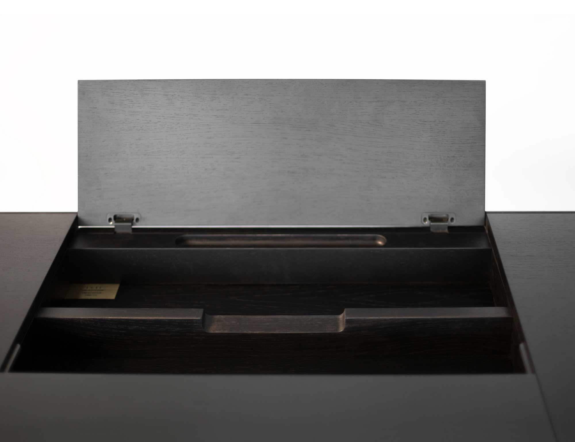 The object AI invites to explore the complexity of the design. The open design teams up with the interaction of square details. That is how the furniture becomes a unique object, which can be used as a chair or even as a wardrobe. At the same time, it could also be seen as a sculpture., which interplays with the room.
