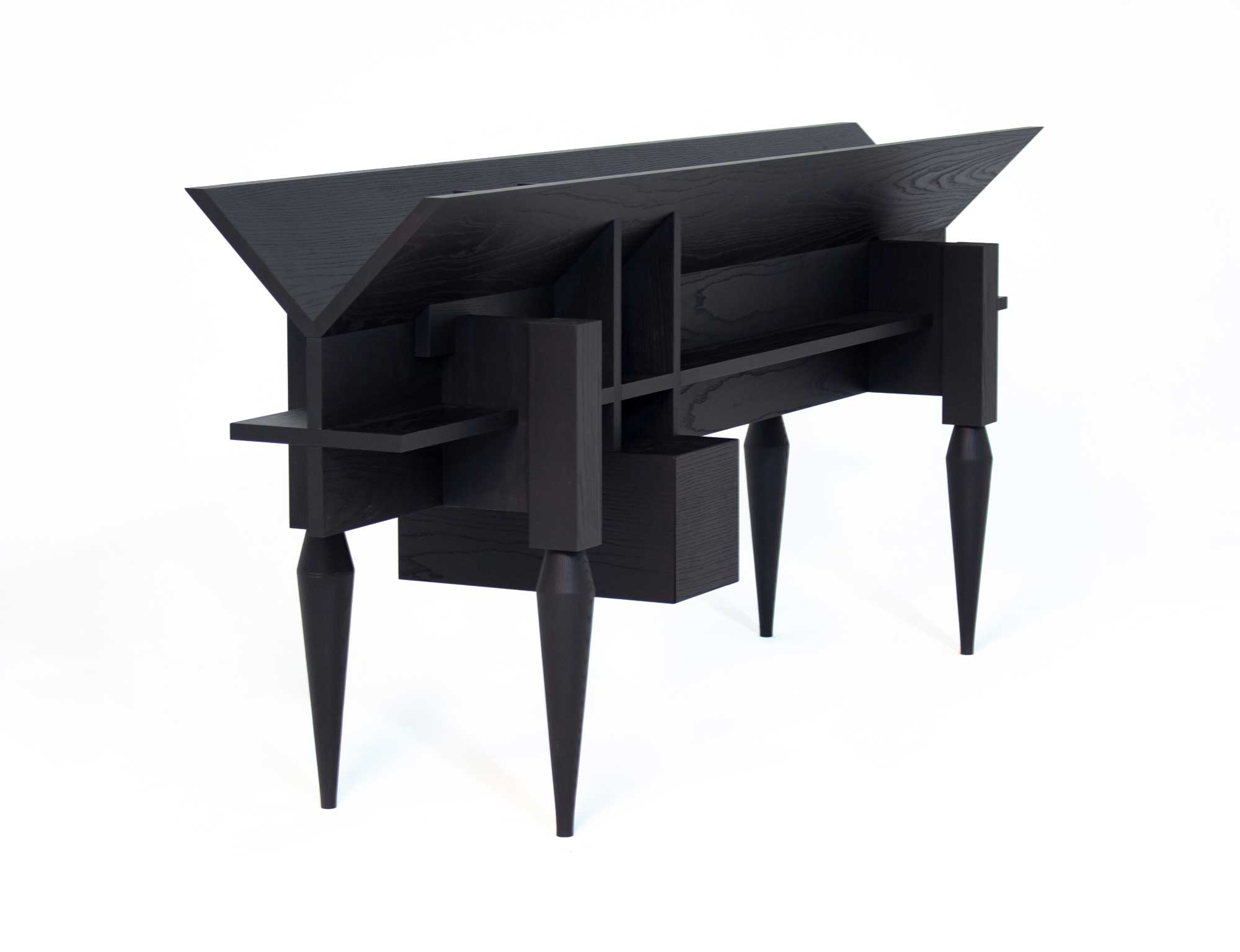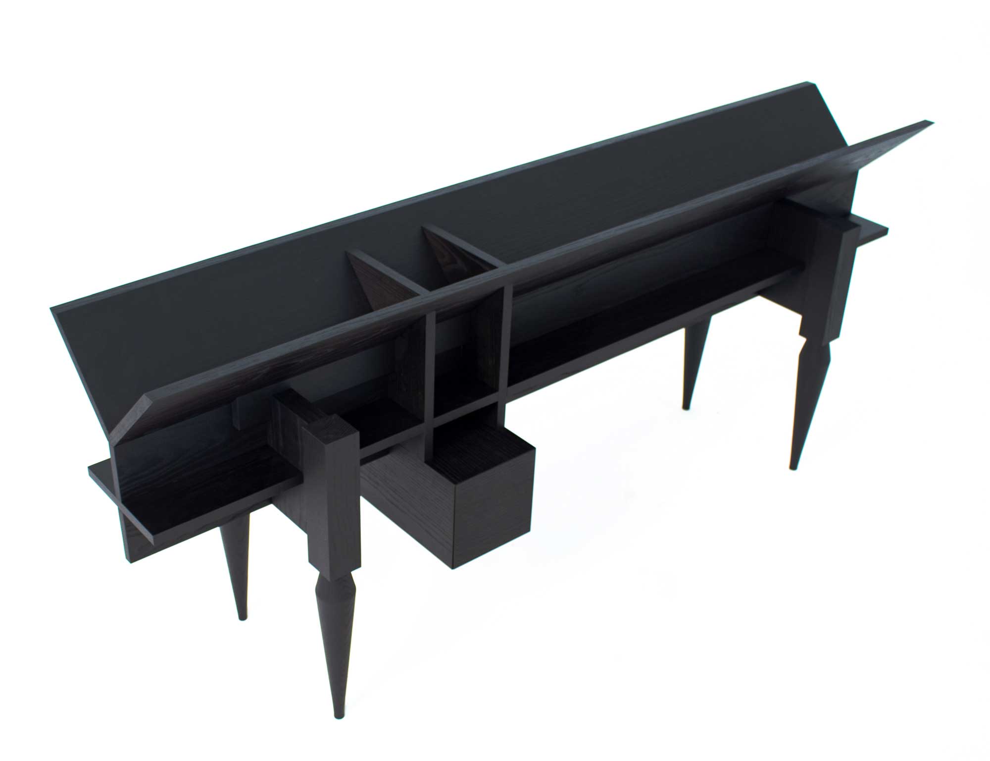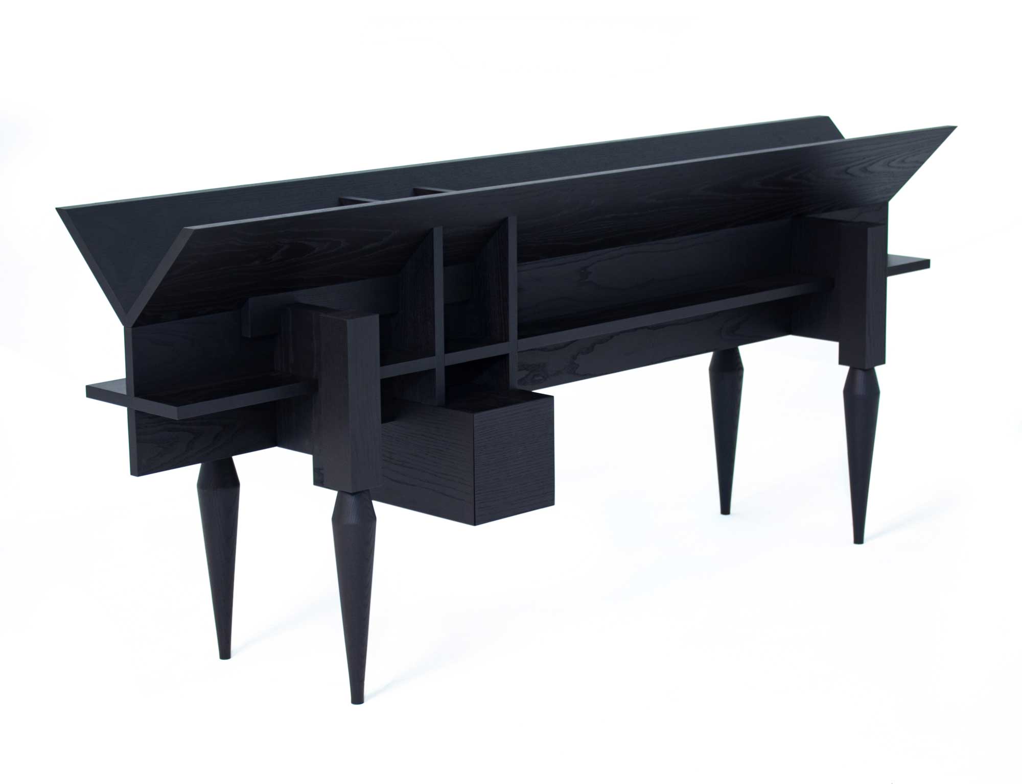 Ypsilon is made out of stained oak wood. As the name reveals, it is possible to recognize the letter Y by looking at the cross section of this object. Both consoles X and Ypsilon complement one another perfectly. Nevertheless, each of the products has a special message, which needs to be discovered by the observer himself.